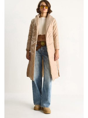 Bianco Lucci Krem Kuşaklı Şal Yaka Kapitone Kaban