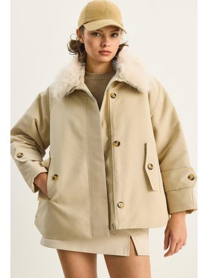 Bianco Lucci Taş Çıkarılabilir Kürk Yaka Su İtici Özellikli Şişme Kaban