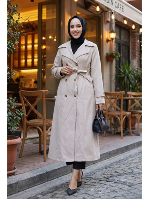 Harmatime butik İçi Astarlı Kuşaklı Düğmeli Vizon Bondit Trençkot