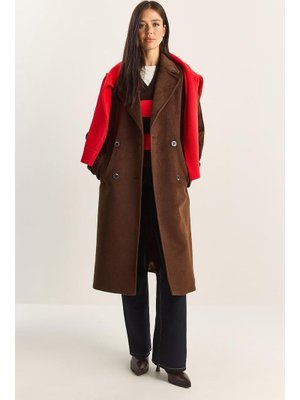 Bianco Lucci Acı Kahve Kruvaze Yaka Astarlı Oversize Uzun Kaşe Kaban