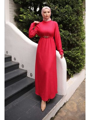 İmaj Butik Fuşya Zincir Kuşaklı Fitilli Elbise