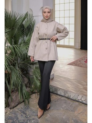 İmaj Butik Taş Bel Lastikli Kemerli Kaşe Çeket