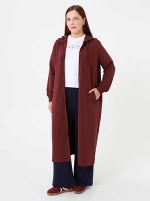 Alia Kahverengi Kapüşonlu Fermuarlı Büyük B. Kap / Pardesü Kızıl