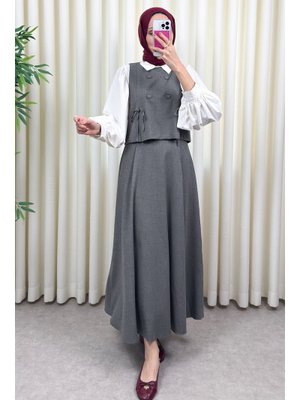 Salih Çelebi Gri Düğme Detaylı Yelekli Takım