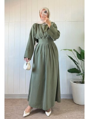 Salih Çelebi Haki Bel Pile Detaylı Elbise