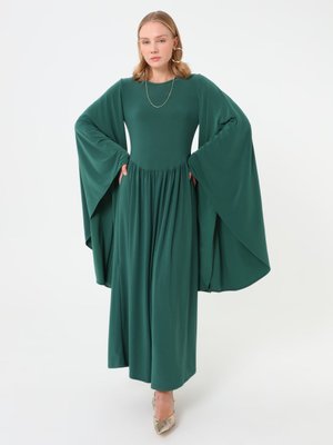 Refka Zümrüt Yeşili Kol Detaylı Elbise
