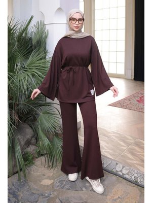 İmaj Butik Kahverengi Armalı Tunik Pantolonlu Modal Takım
