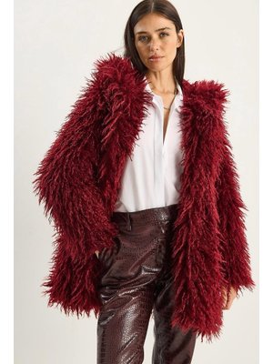 Bianco Lucci Bordo Çift Düğme Detaylı Kapüşonlu Astarlı Tibet Kaban