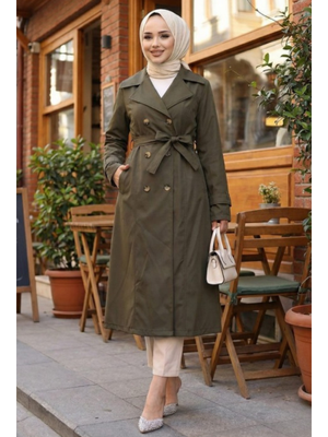 Harmatime butik İçi Astarlı Kuşaklı Düğmeli Haki Bondit Trençkot