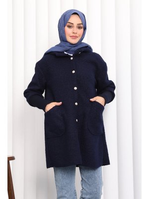 İmaj Butik Lacivert Kapüşonlu Buklet Kaban
