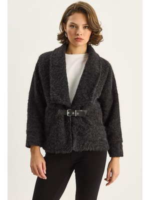 Bianco Lucci Siyah Kemerli Astarlı Keçe Ceket Kaban