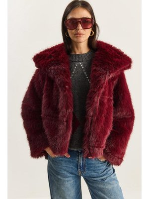 Bianco Lucci Bordo Yakalı Astarlı Premium Kürk