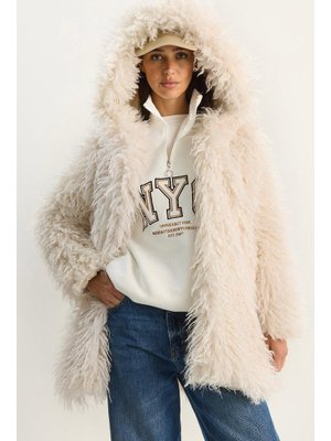 Bianco Lucci Kemik Çift Düğme Detaylı Kapüşonlu Astarlı Tibet Kaban