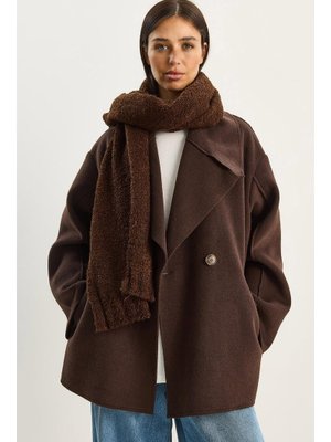 Bianco Lucci Acı Kahve Geniş Yaka Cep Detaylı Oversize Kaşe Kaban