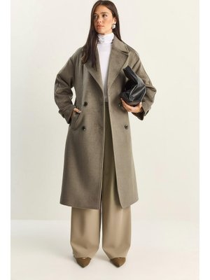 Bianco Lucci Vizon Kruvaze Yaka Astarlı Oversize Uzun Kaşe Kaban