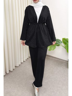 Salih Çelebi Siyah Taş Detaylı Bağcıklı Kimono Takım