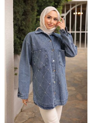 İmaj Butik Mavi Taş İşlemeli Kot Ceket