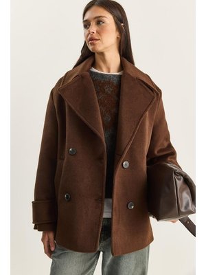Bianco Lucci Acı Kahve Kruvaze Yaka Astarlı Kısa Oversize Kaşe Kaban