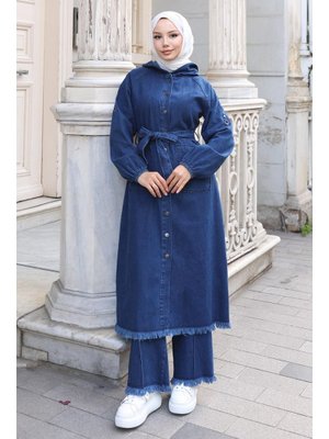 MODAMİHRAM Koyu Mavi Püskül Detaylı Kot Takım