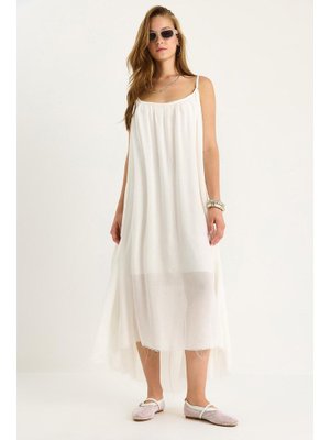 Bianco Lucci Beyaz İnce Askılı Salaş Astarlı Pamuklı Yazlık Elbise