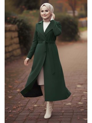 Tofisa Zumrut Kuşaklı Kaşe Kaban Zümrüt
