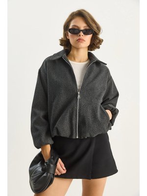 Bianco Lucci Antrasit Cep Detaylı Fermuarlı Kaşe Bomber Ceket
