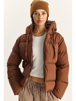 Bianco Lucci Açık Kahve Kapüşonlu Şişme Mont