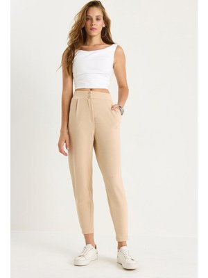 Bianco Lucci Bej Çift Düğmeli Cep Detaylı Balon Pantolon