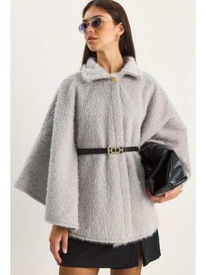 Bianco Lucci Gri Tek Düğmeli Beli Kemerli Sakallı Yumoş Panço