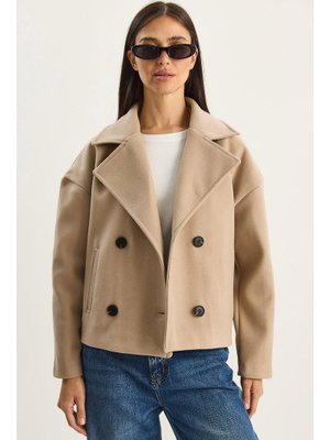 Bianco Lucci Vizon Geniş Yaka Cep Detaylı Astarlı Düğmeli Kısa Kaşe Kaban
