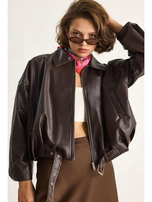 Bianco Lucci Kahve Oversize Tokalı Deri Ceket