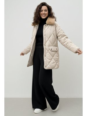 Benguen Taş Rengi Yakası Kürklü Kapitone Mont