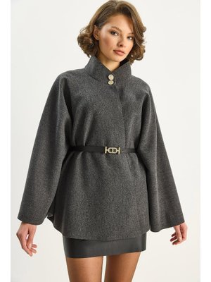 Bianco Lucci Antrasit Gold Düğme Detaylı Dik Yaka Kemerli Panço