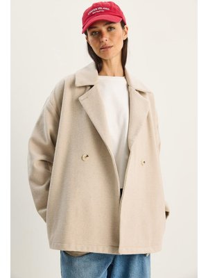 Bianco Lucci Bej Kruvaze Yaka Cep Detaylı Kaşe Blazer Ceket
