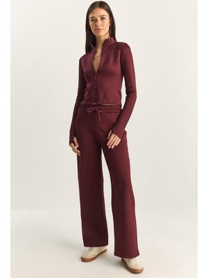 Bianco Lucci Mürdüm Dik Yaka Fermuarlı Bol Pantolonlu Alt Üst Takım
