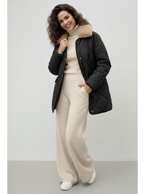 Benguen Siyah Yakası Kürklü Kapitone Mont