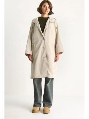 Bianco Lucci Taş Kapüşonlu Astarlı Cep Detaylı Orta Boy Mevsimlik Trençkot