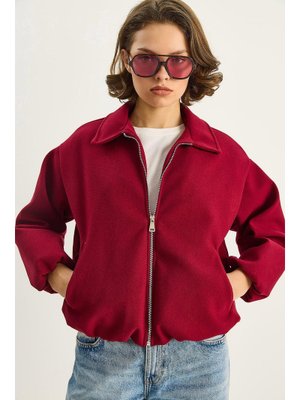 Bianco Lucci Vişne Cep Detaylı Fermuarlı Kaşe Bomber Ceket