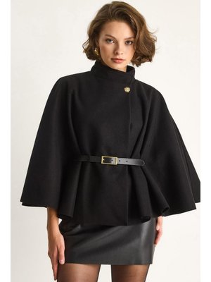 Bianco Lucci Siyah Gold Düğme Detaylı Kemerli Panço