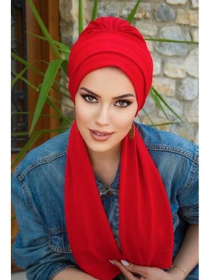 AİŞE TESETTÜR Kırmızı Atkılı Bone