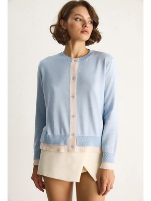 Bianco Lucci Bebe Mavisi Kontrast Renkli Bisiklet Yaka Önü Düğme Kapamalı Hırka
