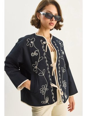 Bianco Lucci Siyah Nakış İşlemeli Cep Detaylı Astarlı Ceket