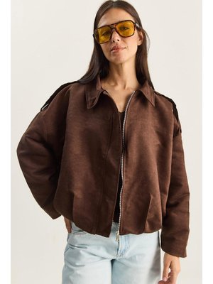 Bianco Lucci Acı Kahve Süet Görünümlü Astarlı Bomber Ceket