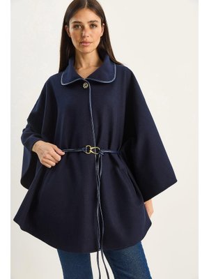 Bianco Lucci Lacivert Cep Detaylı Suni Deri Kemerli Kaşe Panço