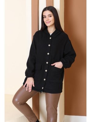 Tofisa Siyah Sıyah Çift Cepli Bileği Lastikli Kaşe Mont