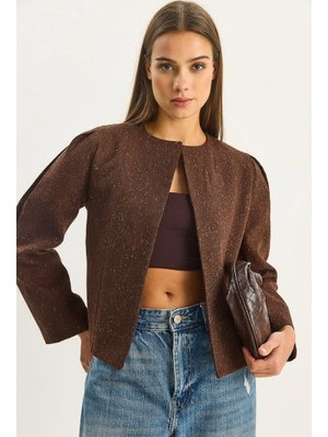 Bianco Lucci Kahverengi O Yaka Önü Açık Kendinden Dokulu Astarlı Ceket