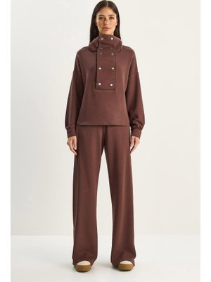 Bianco Lucci Kahverengi Dik Yaka Çıtçıt Detaylı Modal Alt Üst Takım