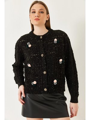 Bianco Lucci Siyah Ponponlu Desenli Triko Hırka