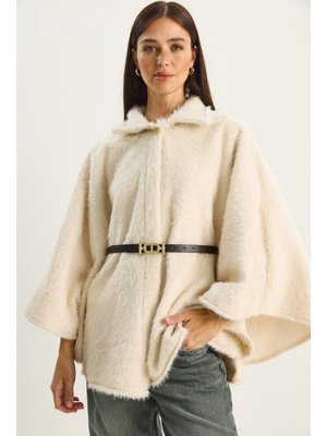 Bianco Lucci Ekru Tek Düğmeli Beli Kemerli Sakallı Yumoş Panço