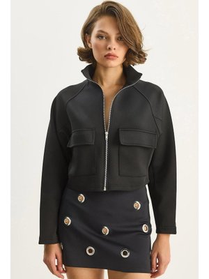 Bianco Lucci Siyah Cep Detaylı Fermuarlı Scuba Dalgıç Bomber Ceket